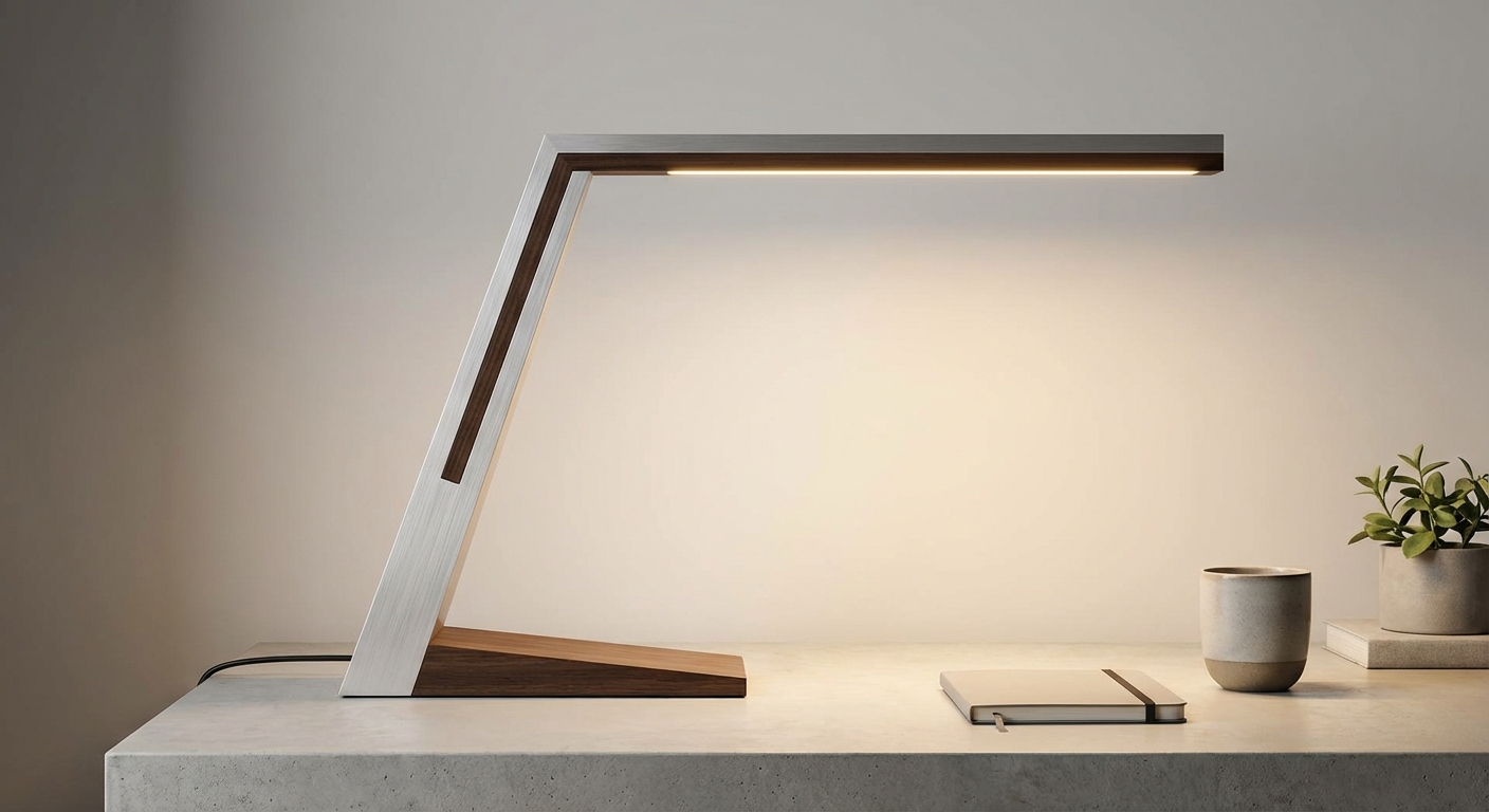 Illuminate your workspace with style. This minimalist desk lamp provides perfect ambient lighting with a touch of modern art.